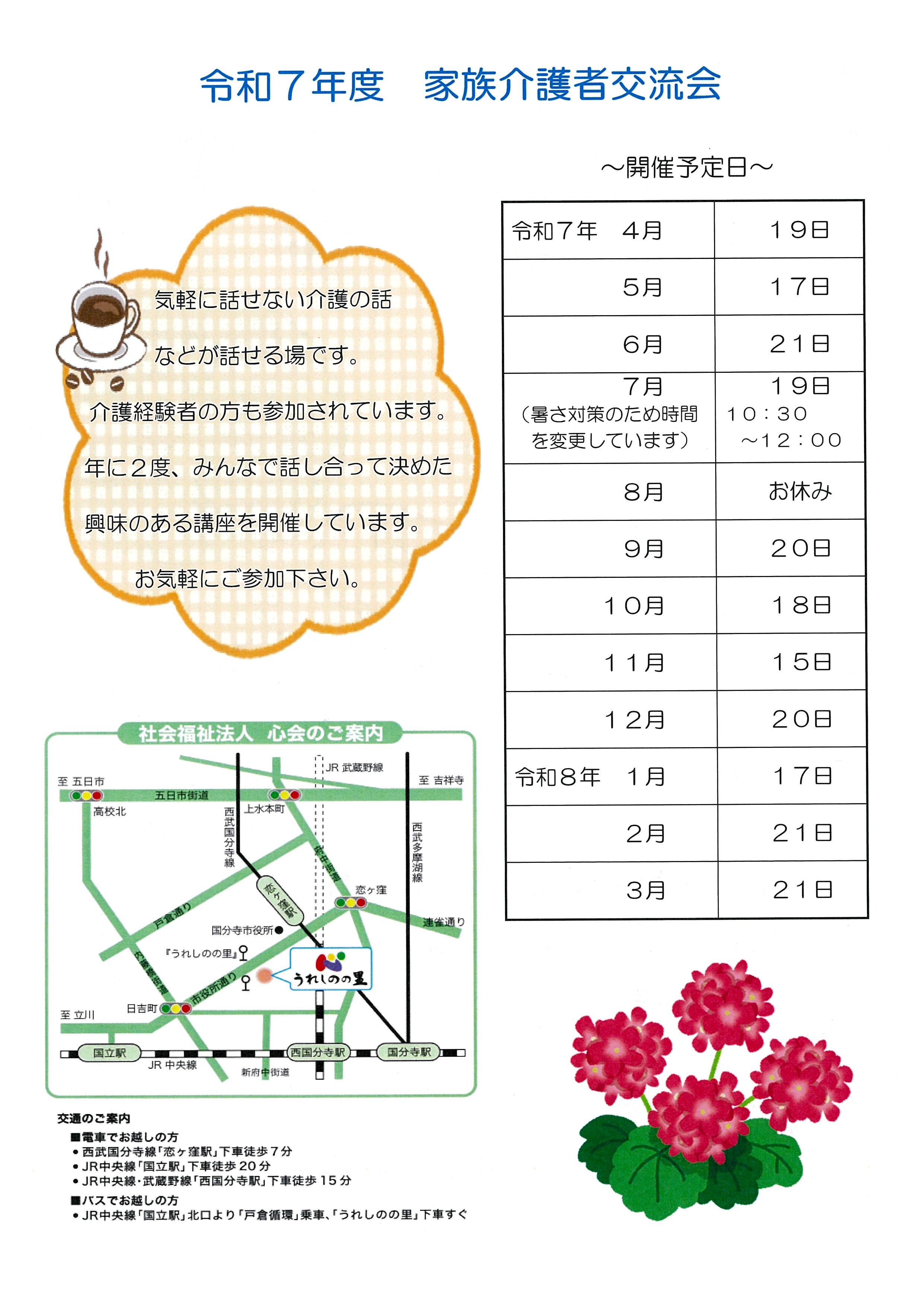 毎月第3土曜日に「特別養護老人ホームうれしのの里」にて開催いたします。